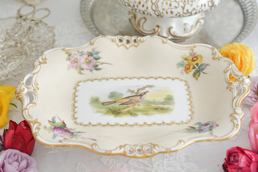 ダベンポート ハンドペイントで描かれたお花と鳥の絵柄が美しいコンポート