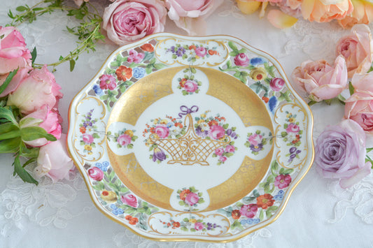 SPドレスデン カール・ティーメ工房 リボンとバスケット柄の豪華なプレート