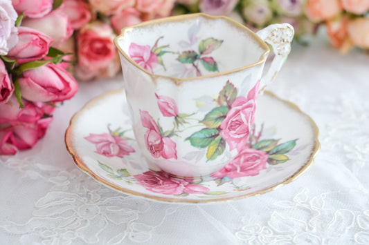 ロイヤルスタッフォード バークレーローズ 大輪のバラに可愛らしいハンドルのカップ&ソーサー