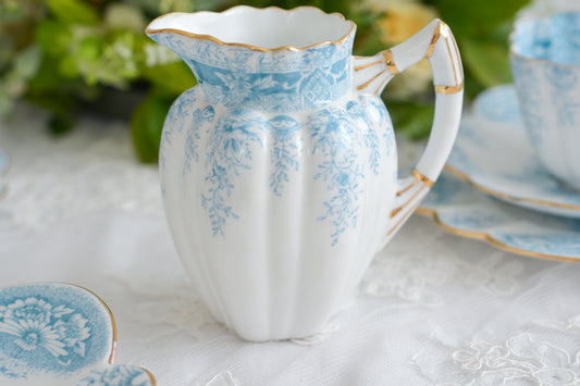 ワイルマン 貴重なデイジーシェイプ、パラダイスパターン ターコイズブルーが美しいミルクジャグ