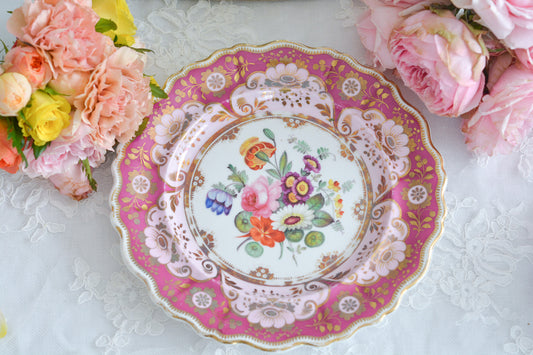 ロココリバイバル 優雅な手描きの花束にピンクとマルーンカラーの美しいプレート