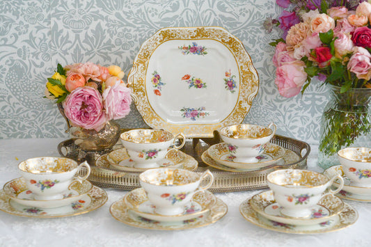 残りわずか【蚤の市】ハマースレイ 豪華な金彩とブーケ柄のティートリオ、B&Bプレート単品(プルダウンよりお選びください)