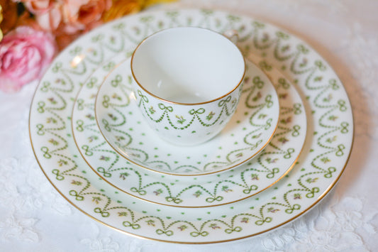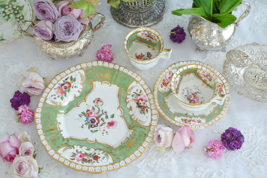 オールドイングリッシュハンドル アップルグリーンの美しいトゥルートリオとプレートのセット