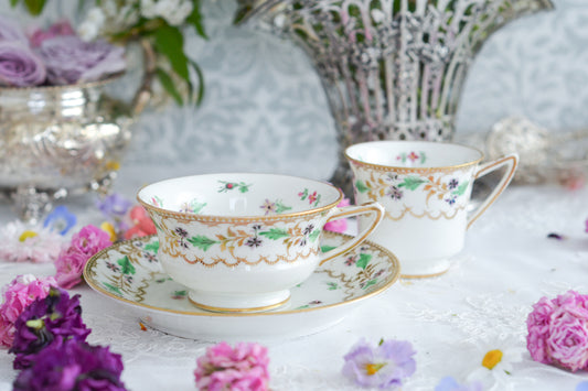 オールドノリタケ 小さなお花が可愛らしいティートリオ
