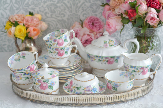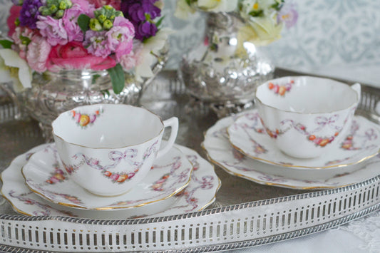 エインズレイ リボンにバラのガーランドが可愛らしいティートリオ