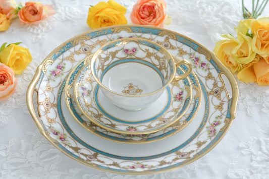 オールドノリタケ ターコイズブルーとエナメルジュールの美しいティー4点セット