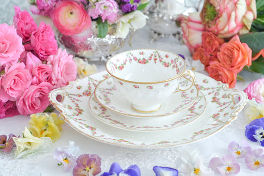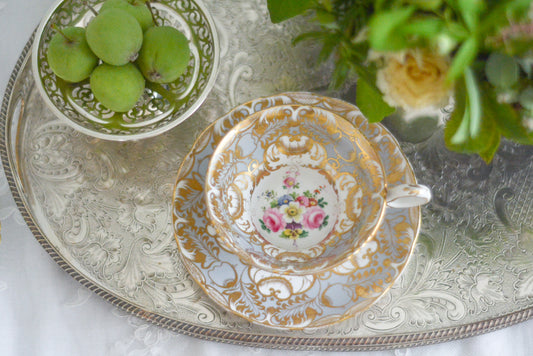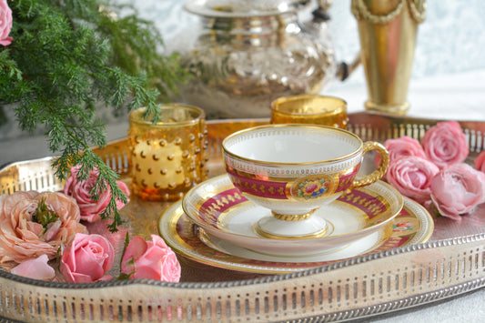 クレッセント 金盛りの金彩にバラがとても華やかなティートリオ