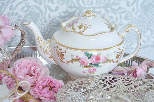 クレッセント ハンドペイントのバラと金彩が美しいエレガントなティーポット