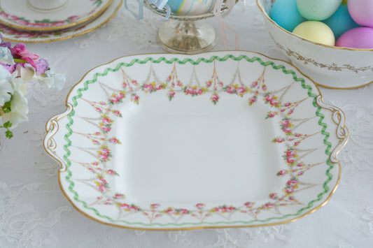 コウルドン バラのガーランド模様にグリーンのボウが可愛らしい B&Bプレート