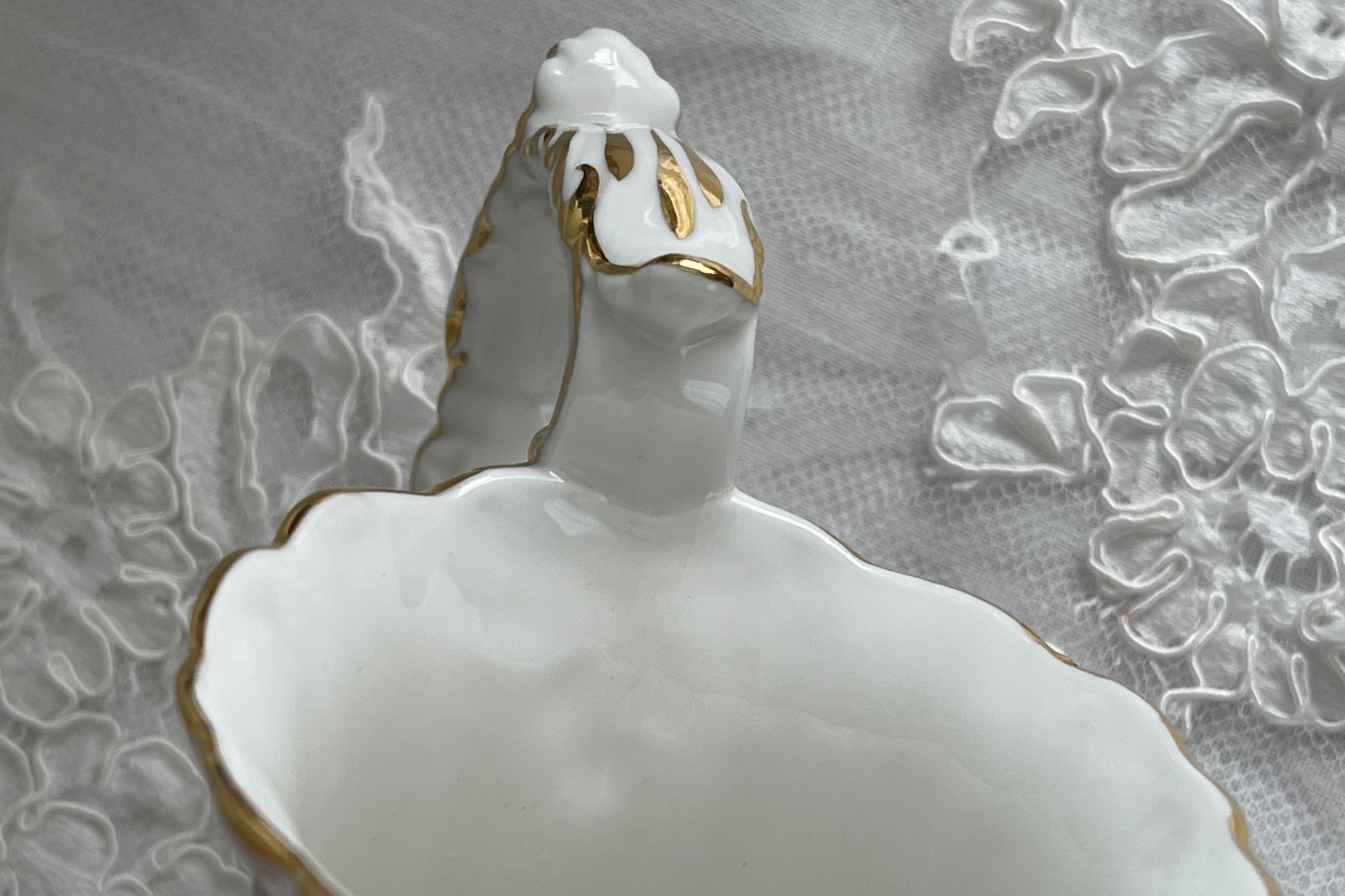 ヴィンテージ製品のためわずかな金彩の擦れやプリントの擦れ、カトラリー傷、製造時にできるとても小さな茶点や黒点がある場合がございます。