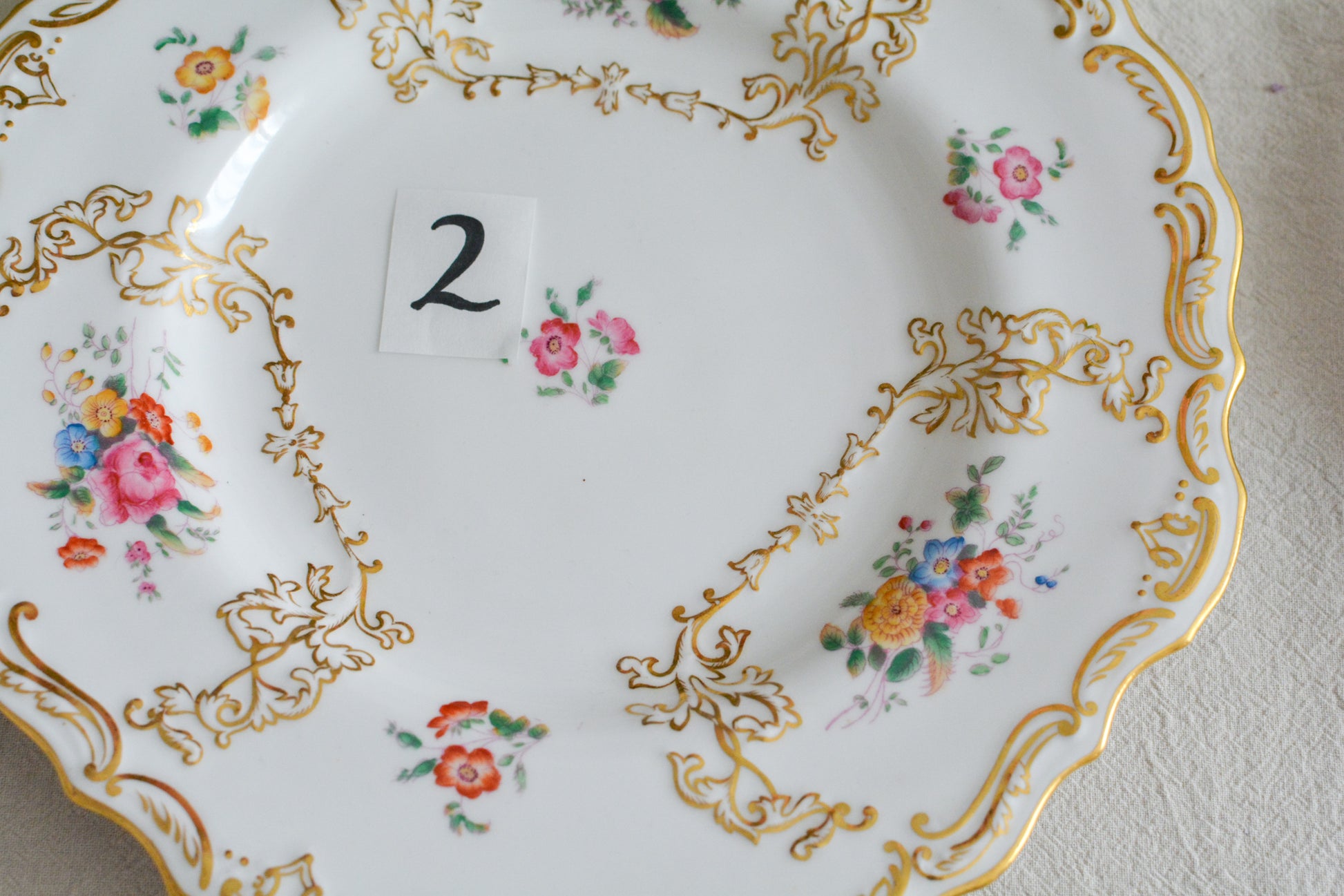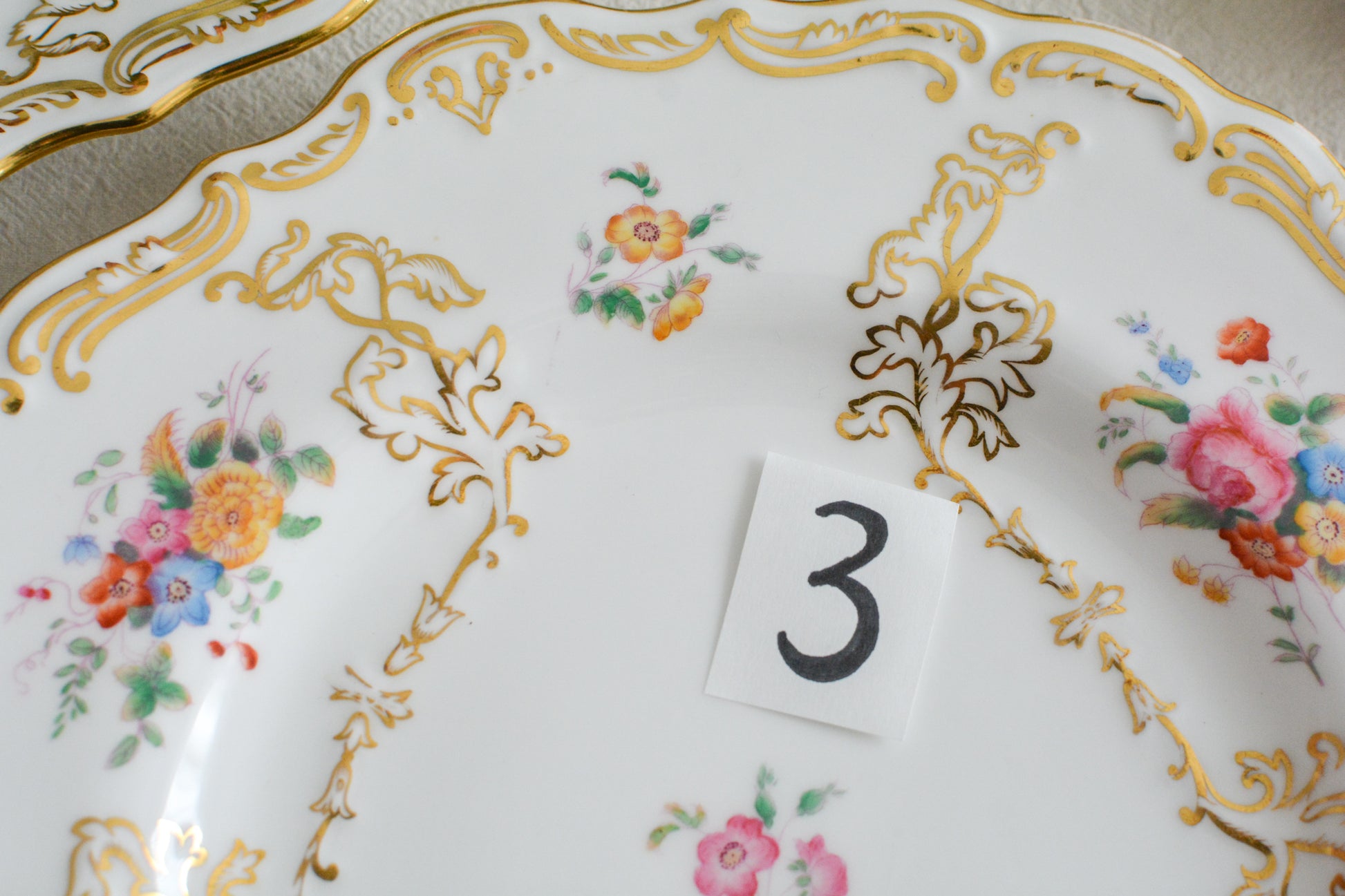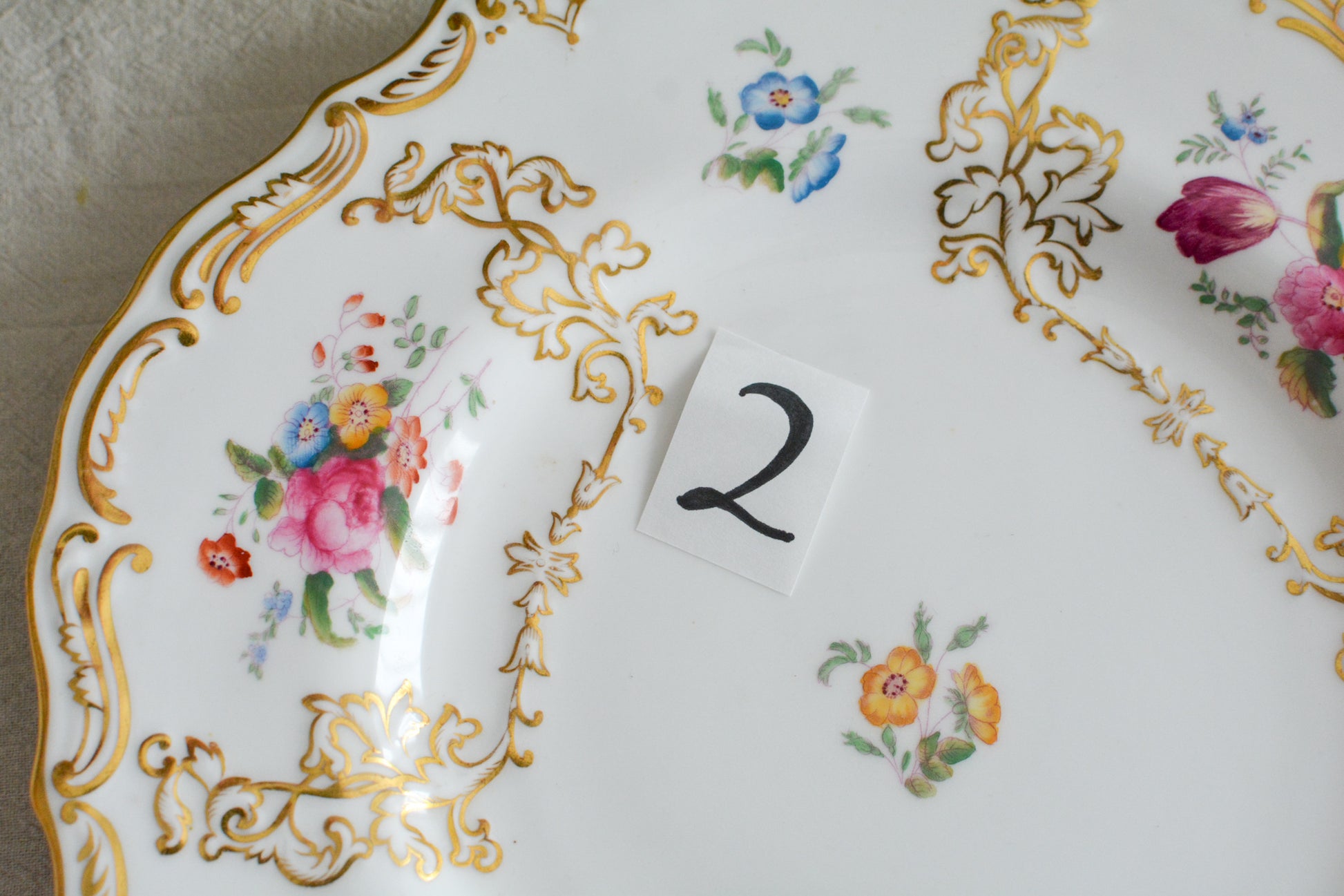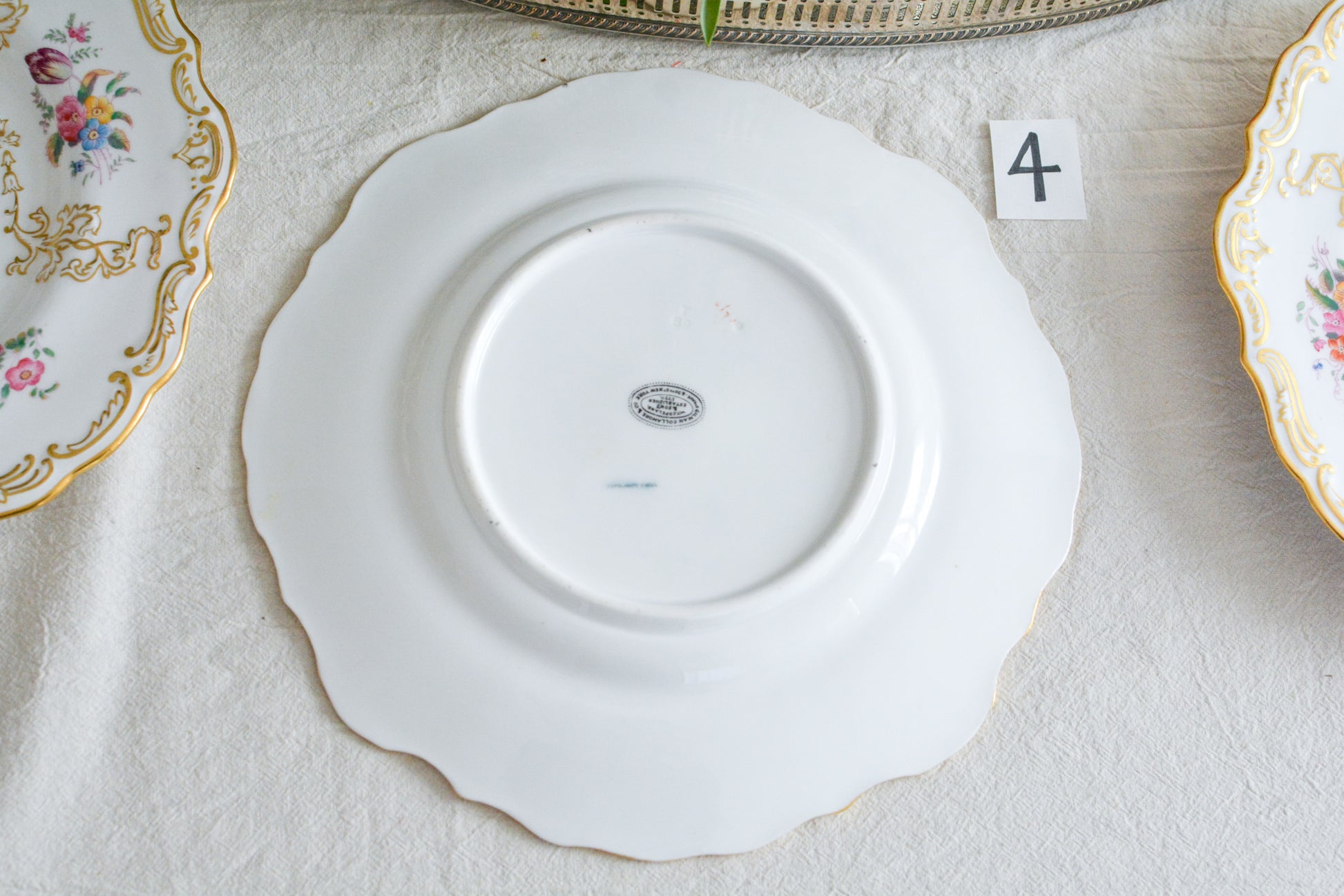 エンボスの上に金彩のエレガントな模様と花々が描かれたコープランドのプレートです。とても美しくて、ハンドペイントの為、お花のデザインは一枚ずつ異なります。どんなデザートをのせるか楽しみになりますね。ティータイムにたくさん活躍してくれそうです。こちらは1枚の価格です。全部で6枚在庫がございます。少しずつ絵柄が違いますので①〜⑥からお選びください。