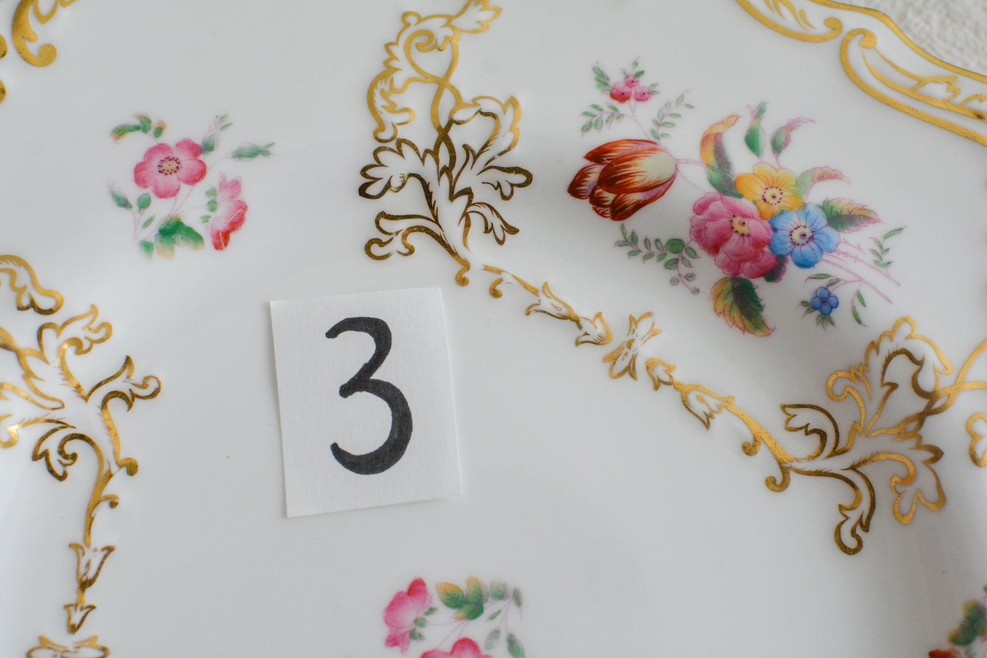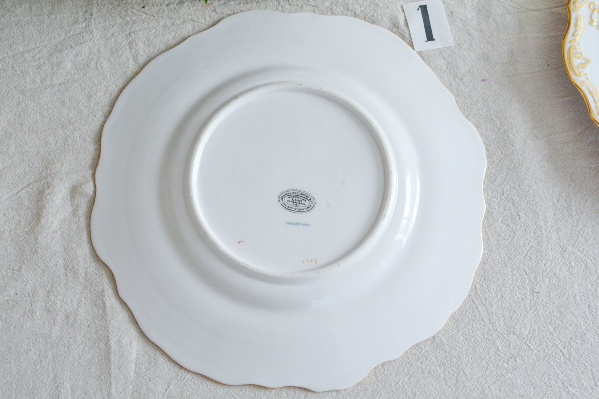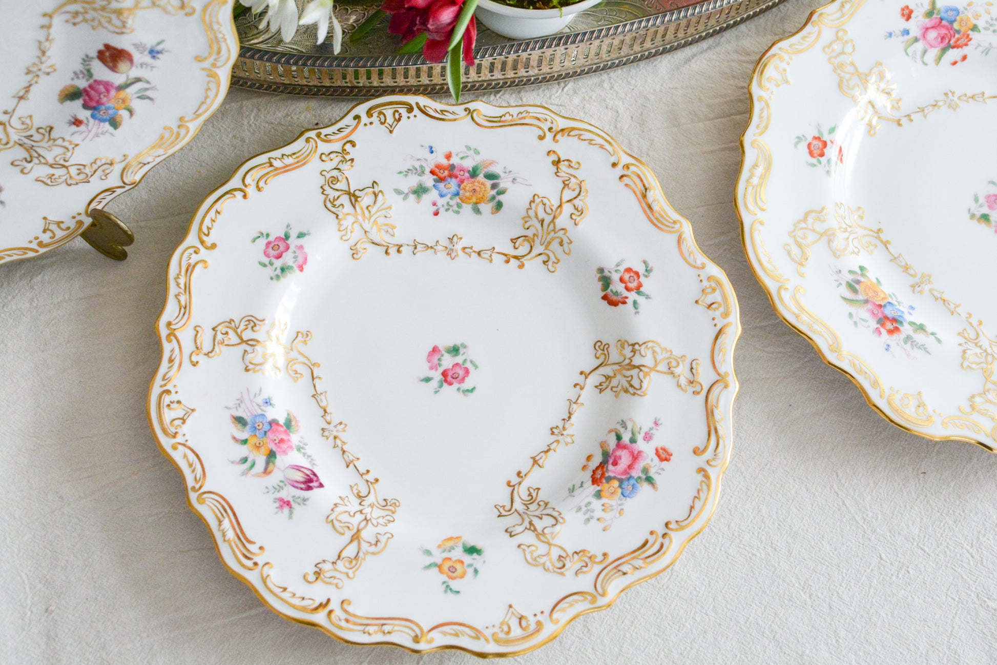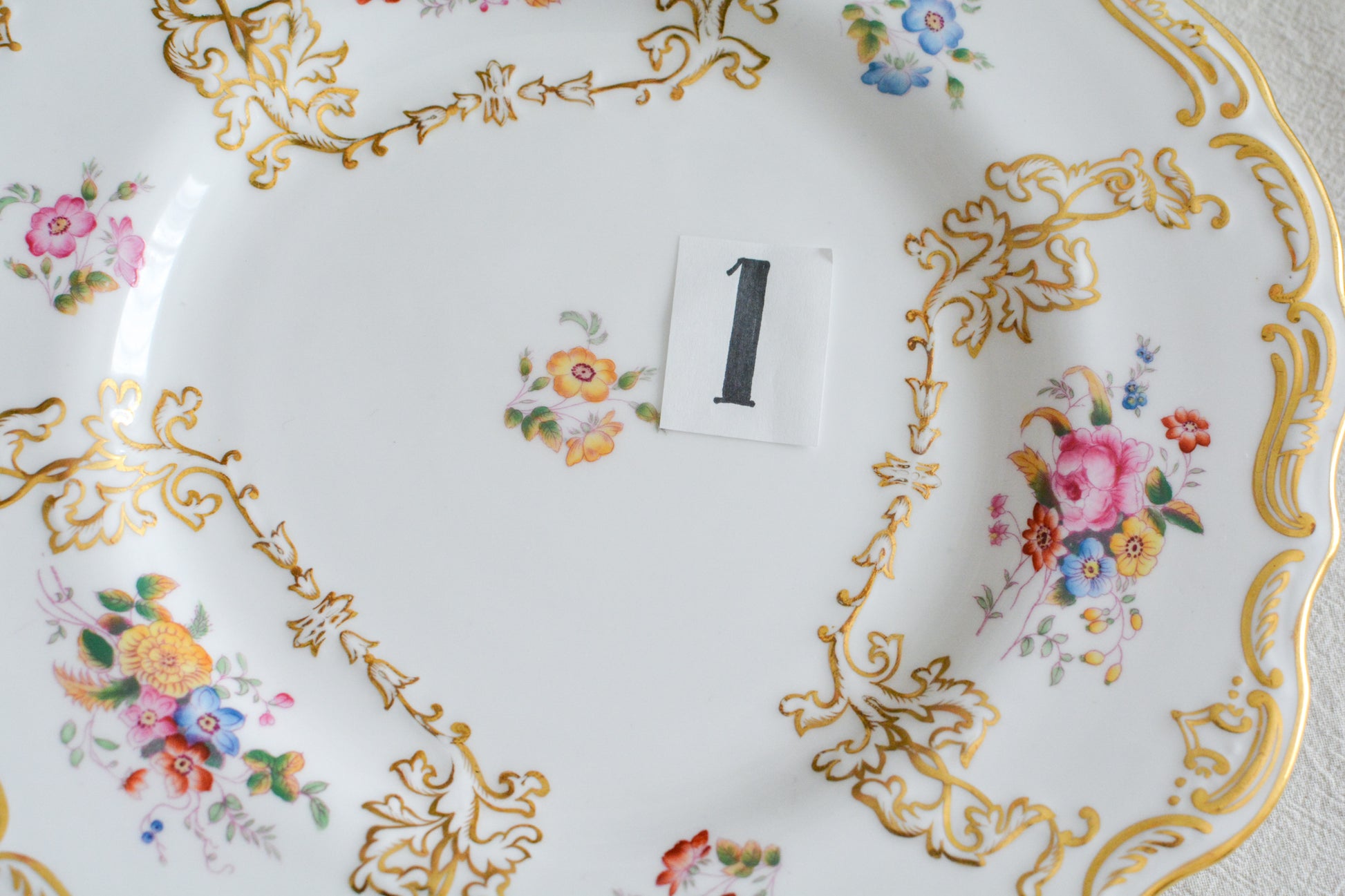 エンボスの上に金彩のエレガントな模様と花々が描かれたコープランドのプレートです。とても美しくて、ハンドペイントの為、お花のデザインは一枚ずつ異なります。どんなデザートをのせるか楽しみになりますね。ティータイムにたくさん活躍してくれそうです。こちらは1枚の価格です。全部で6枚在庫がございます。少しずつ絵柄が違いますので①〜⑥からお選びください。
