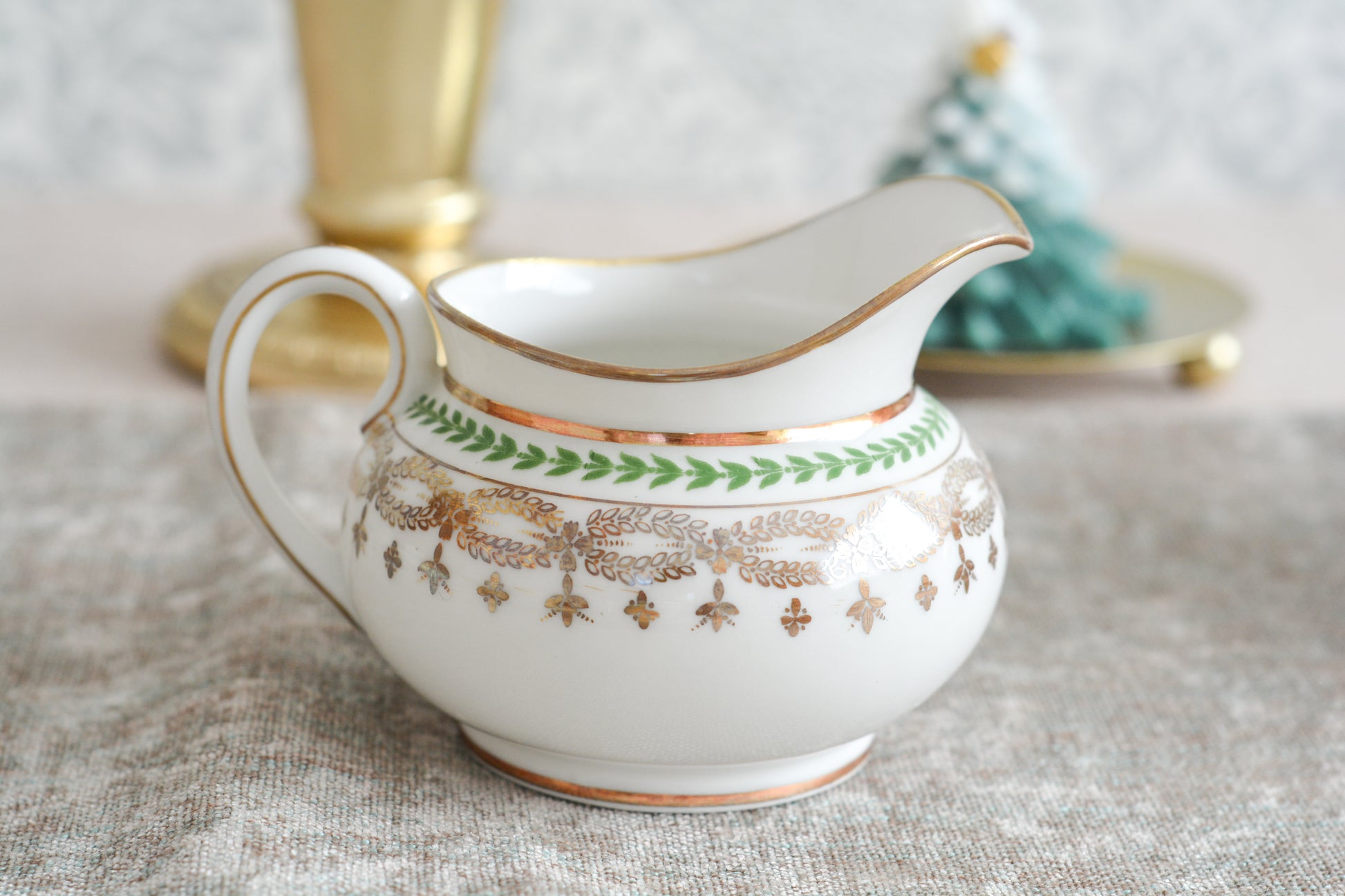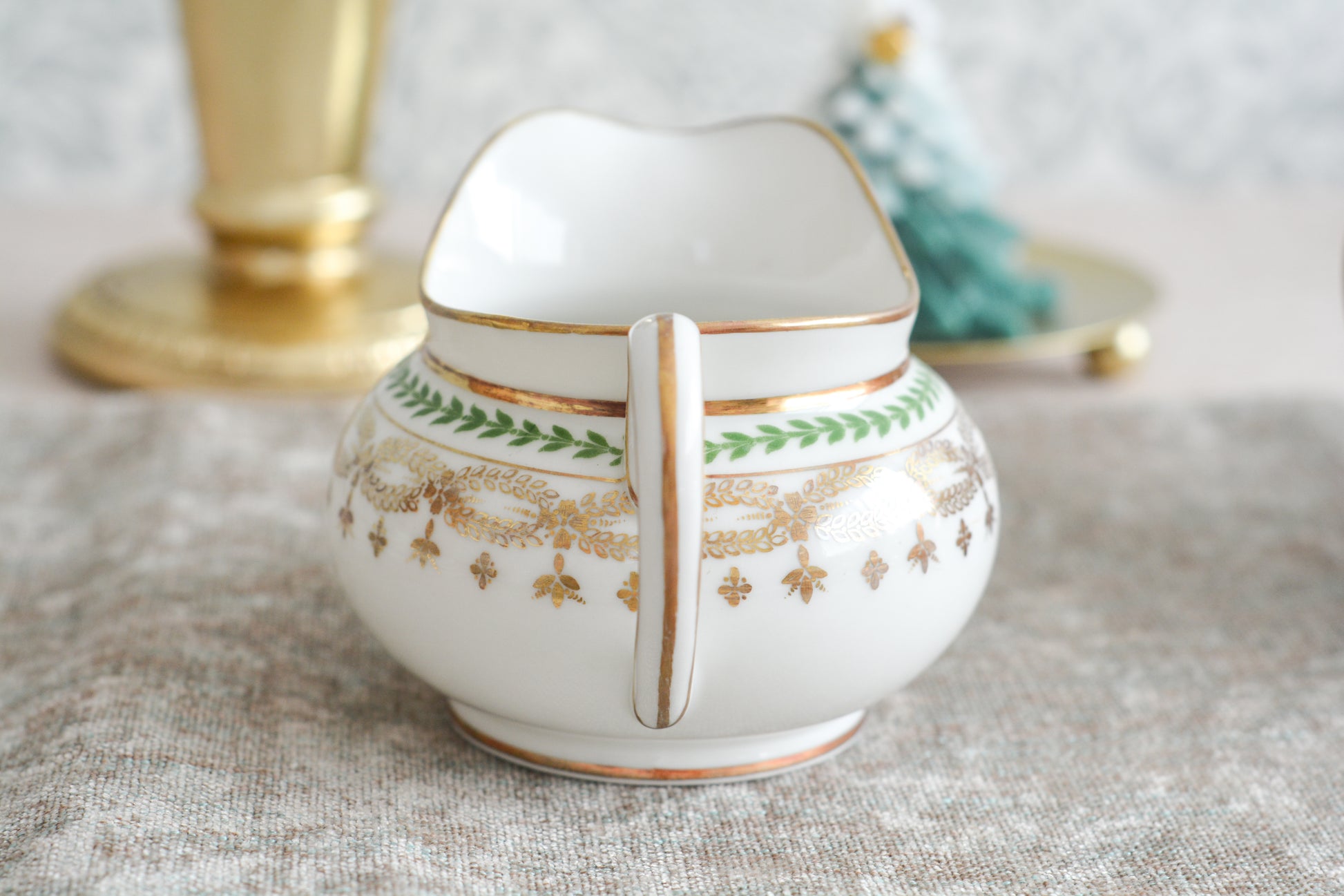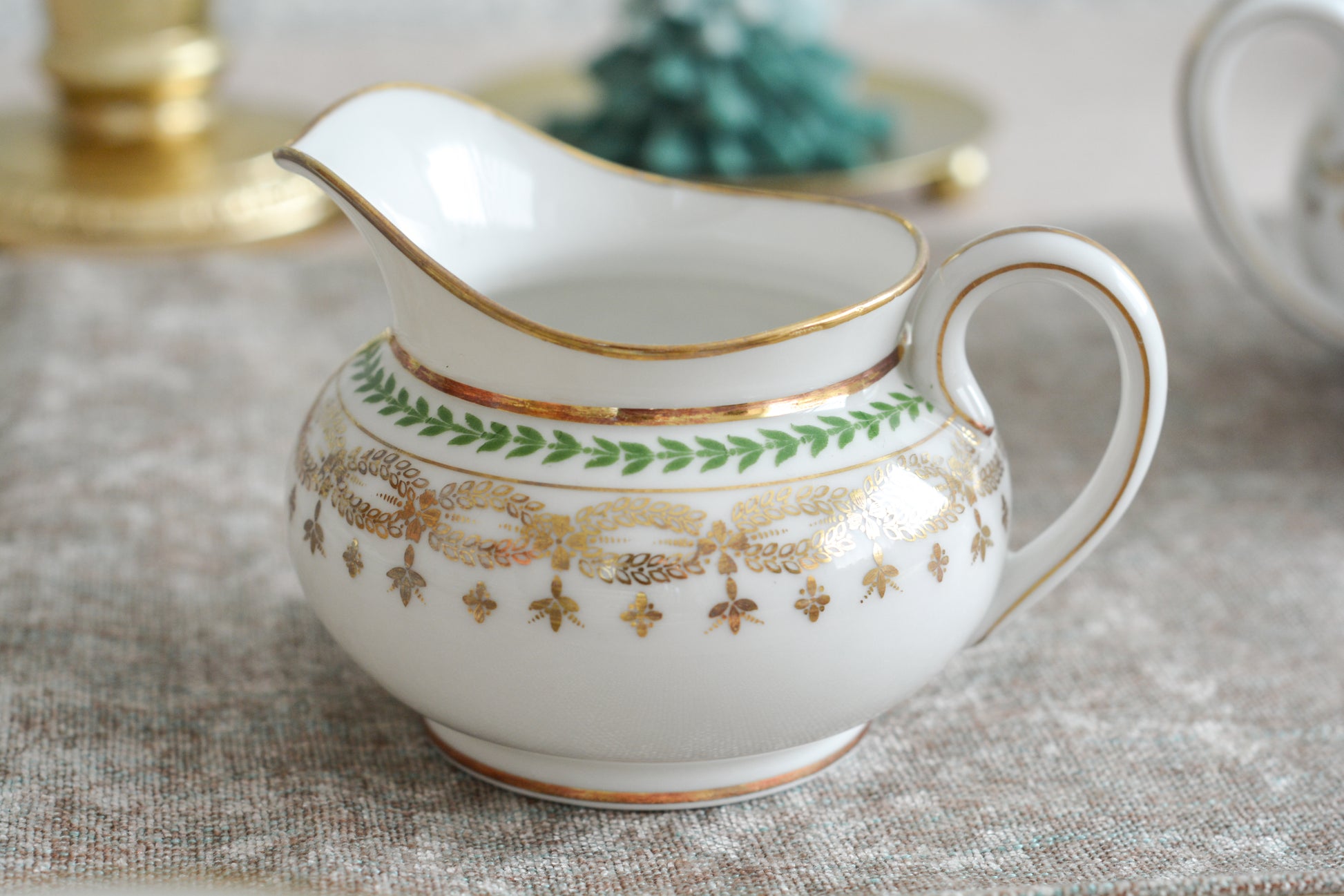 フランスのリモージュ、ジャン・プーヤ工房のティートリオです。デザインはシンプルですが、上品でクリスマスのティータイムやテーブルコーディネートにぴったりなお品。ぜひクリスマスのティータイムなどにお楽しみいただきたいです。小さなお花を入れても素敵です。