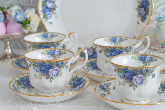 ロイヤルアルバート ムーンライトローズ ブルーローズのティートリオ