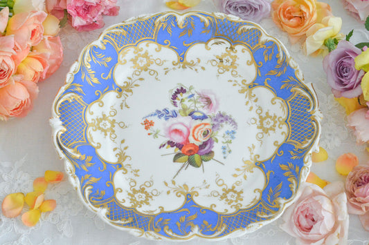 コープランド コバルトブルーに美しい花々のデザートプレート