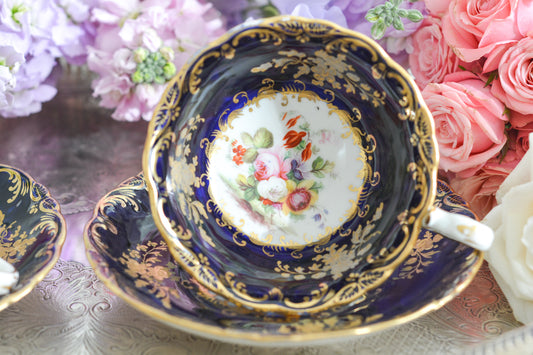 コールポート アデレードシェイプ コバルトブルーの豪華なティーカップ&ソーサー