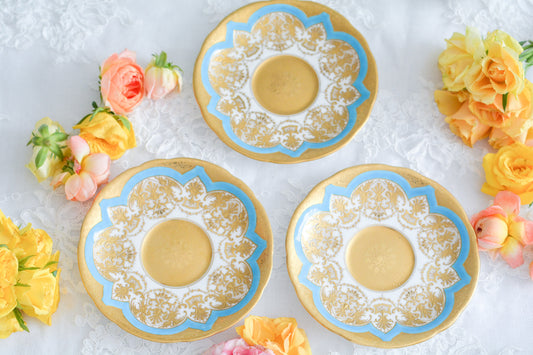 コールポート ターコイズブルーと金彩にハンドペイントで描かれた花々が美しいティートリオ1セット