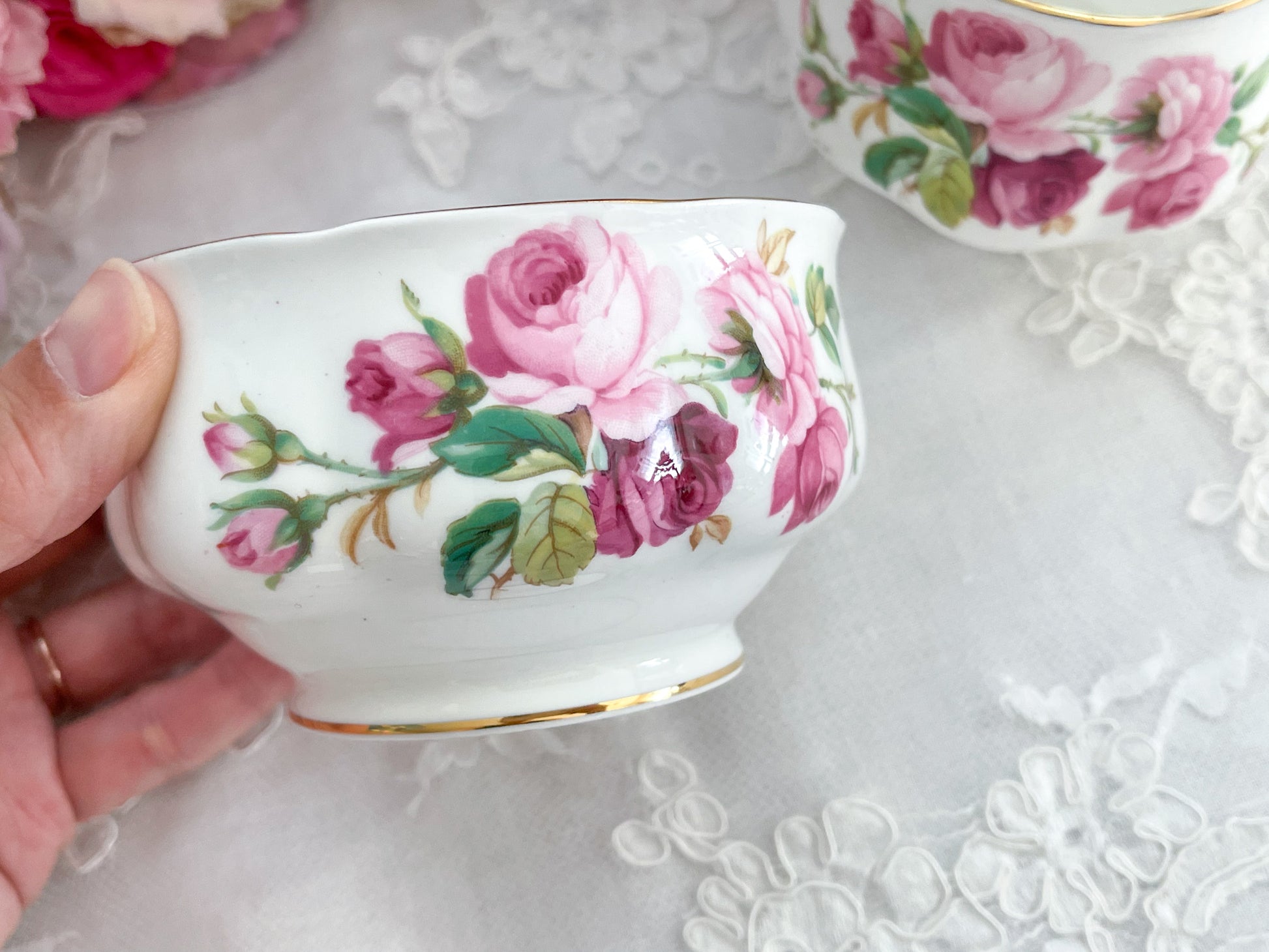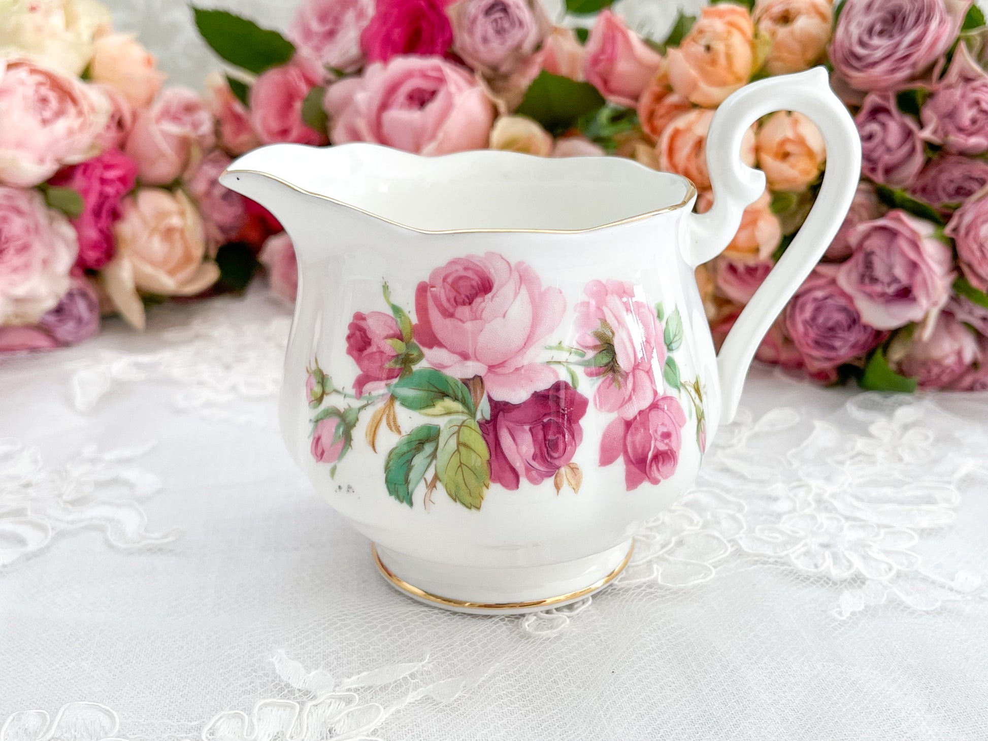 アン王女をイメージして作られたプリンセスアンシリーズ。薔薇がたくさん描かれていて上品で華やかな印象です。そして流通量が極めて少なくとても貴重なシリーズです。大きなバラがたくさん描かれていて、テーブルがとても華やかになるシリーズですね。