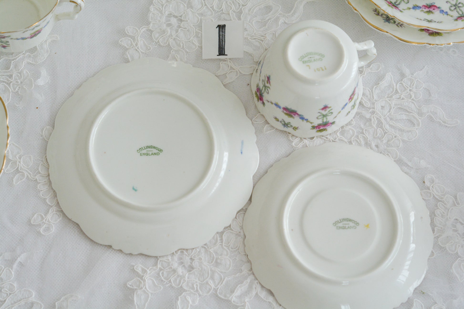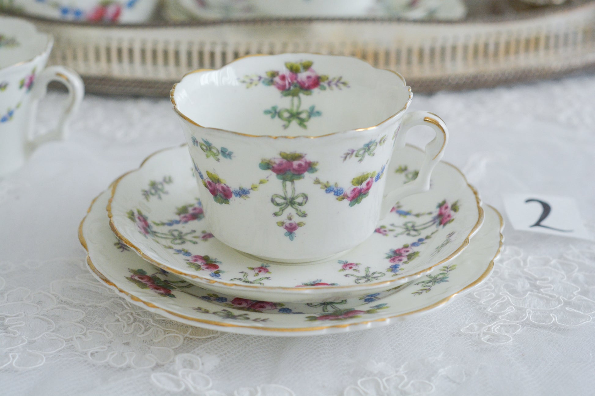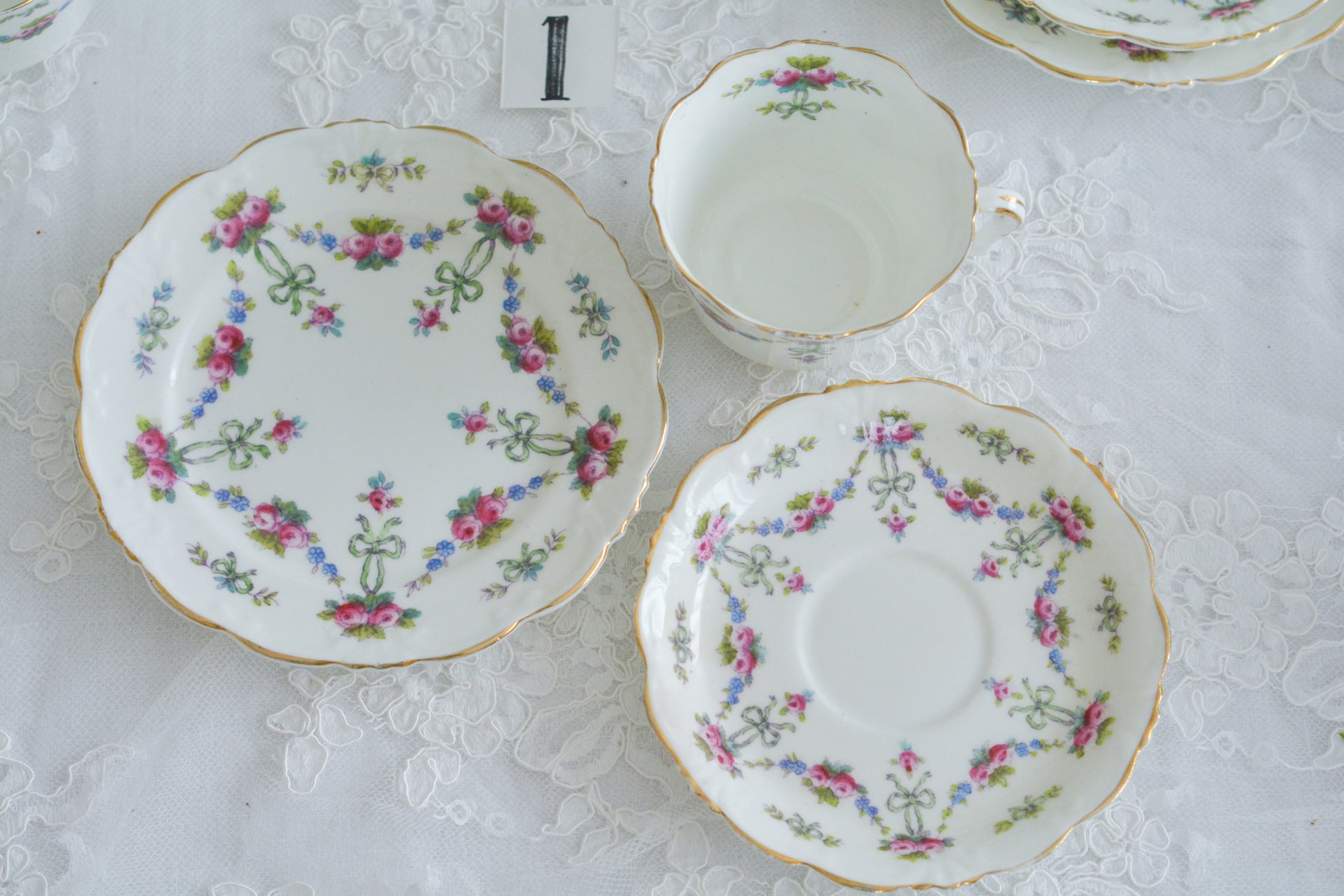 コリンウッドのリボンにバラのガーランドが素敵なティーセット(プルダウンより単品ご選択可能)